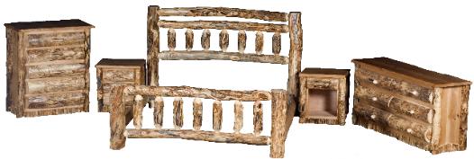 | We are very proud of our new Alder Line. When finished, Alder turns out to be a light brown cinnamon color which matches perfectly with our hand chosen Aspen Logs that make up the corners of the furniture. You can match the Alder with Half Log Aspen Drawer Fronts, or have flat sanded Alder Drawer fronts. Whatever your preference our new Alder Line is sure to make any log furniture shopper happy. |